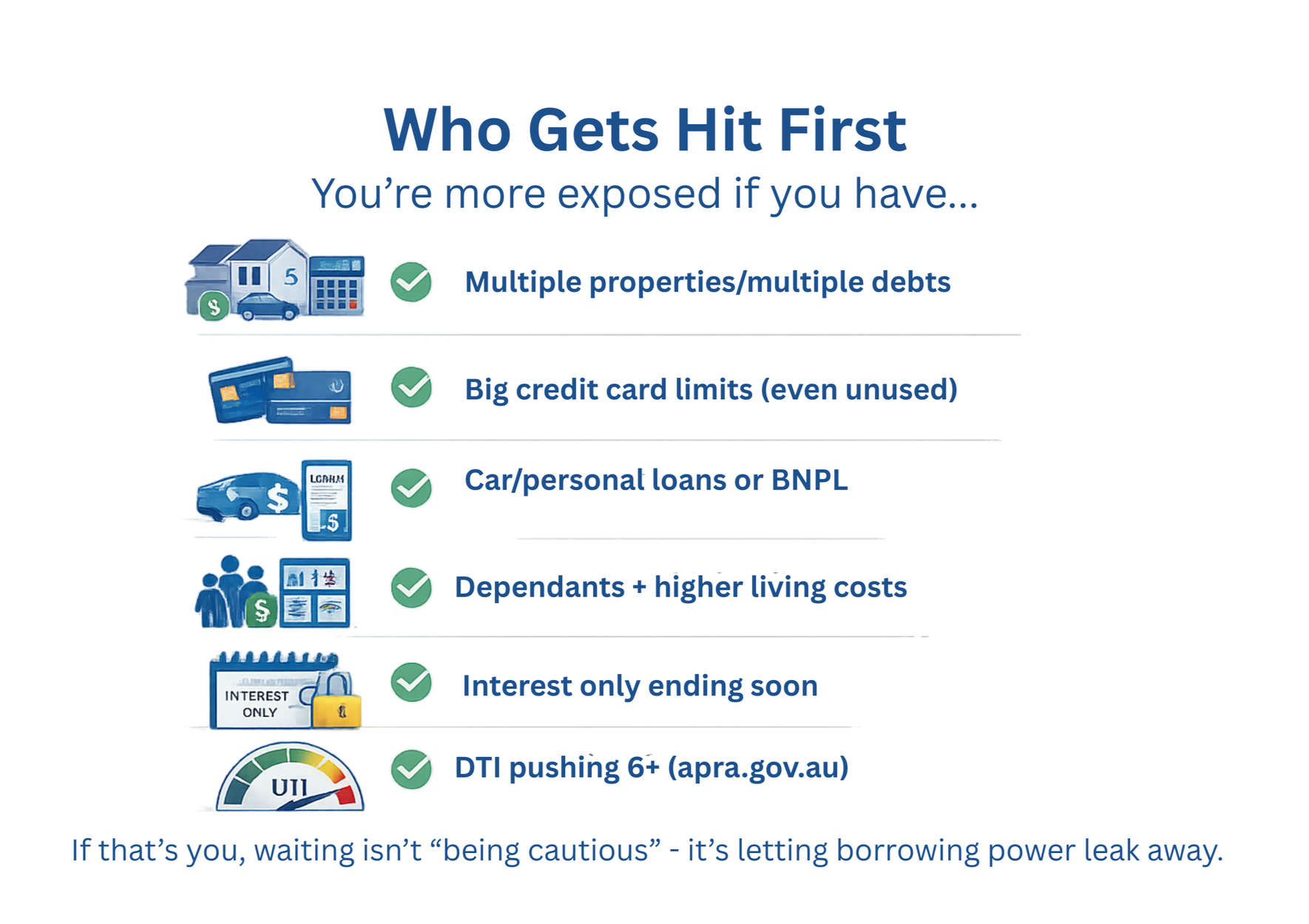 APRA’s serviceability buffer is +3% and still applies. (apra.gov.au) - So you’re not assessed at your actual rate - you’re assessed higher.